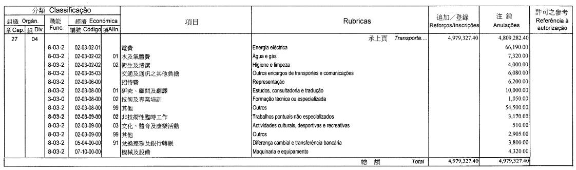 | 01 | 02 | 03 | 00 | 01 | 額外工作 | 4,230,000.00 | |