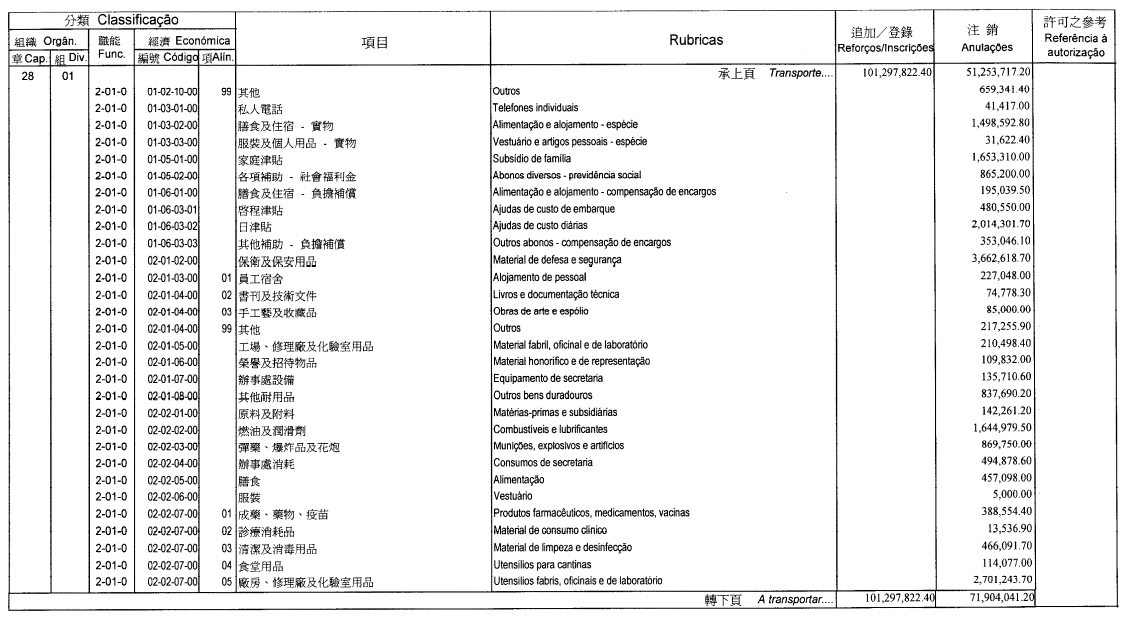 | 01 | 03 | 02 | 00 | 00 | 膳食及住宿——實物 | 40,000.00 | |