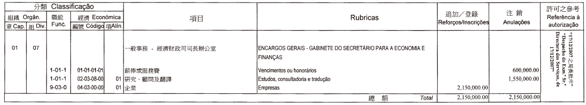 按照經濟財政司司長於二零零七年十一月二十六日之批示: