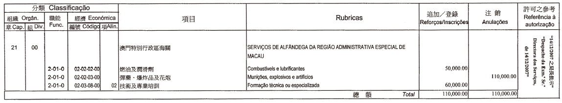 按照經濟財政司司長於二零零七年十二月十三日發出的批示: