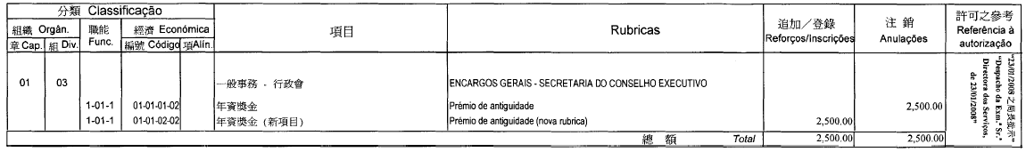 Chan Suk Yee, como terceiro-oficial, 1.º escalão, índice 195, a partir de 1 de Fevereiro de 2008.