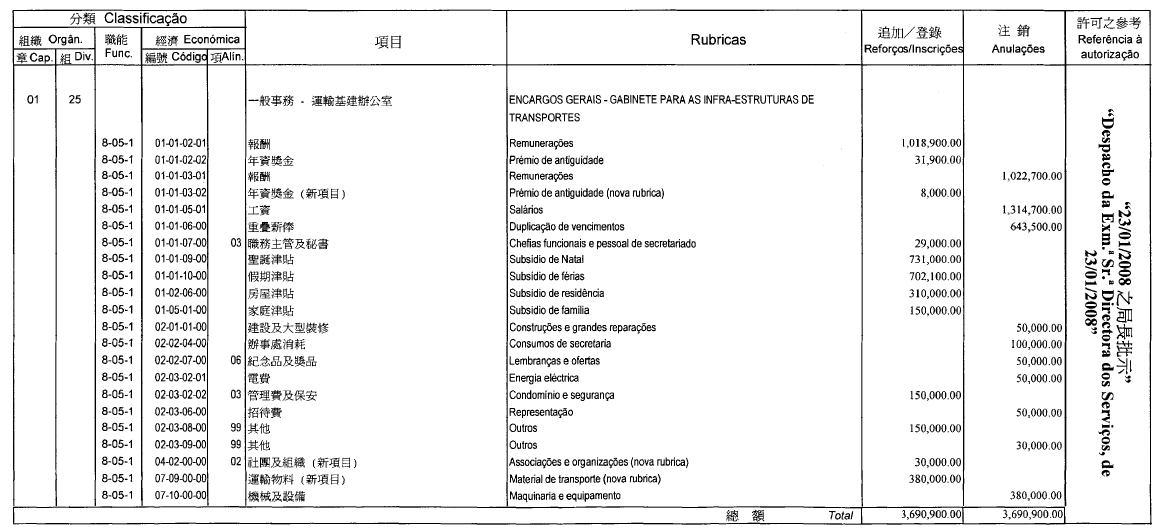 Por despacho do director dos Serviços, de 11 de Janeiro de 2008: