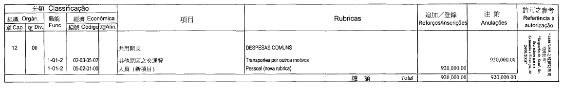 Por despacho de S. Ex.a o Chefe do Executivo, de 14 de Setembro de 2007: