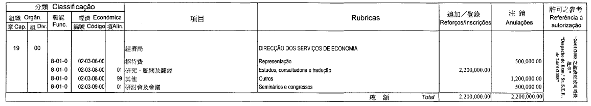 Direcção dos Serviços de Economia, aos 30 de Janeiro de 2008. — O Director dos Serviços, substituto, Sou Tim Peng.