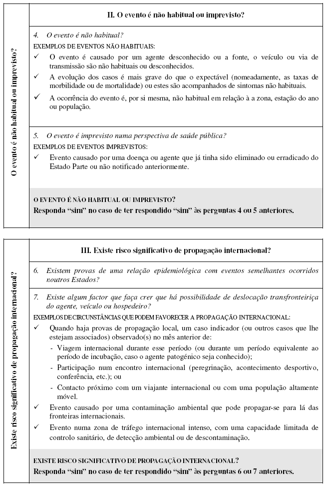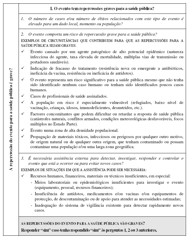 INSTRUMENTO DE DECISÃO PARA A AVALIAÇÃO E NOTIFICAÇÃO DOS EVENTOS SUSCEPTÍVEIS DE CONSTITUIR UMA EMERGÊNCIA DE SAÚDE PÚBLICA DE INTERESSE INTERNACIONAL
