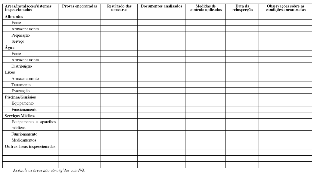 ANEXO AO MODELO DE CERTIFICADO DE ISENÇÃO DE CONTROLO SANITÁRIO DE NAVIO/CERTIFICADO DE CONTROLO SANITÁRIO DE NAVIO