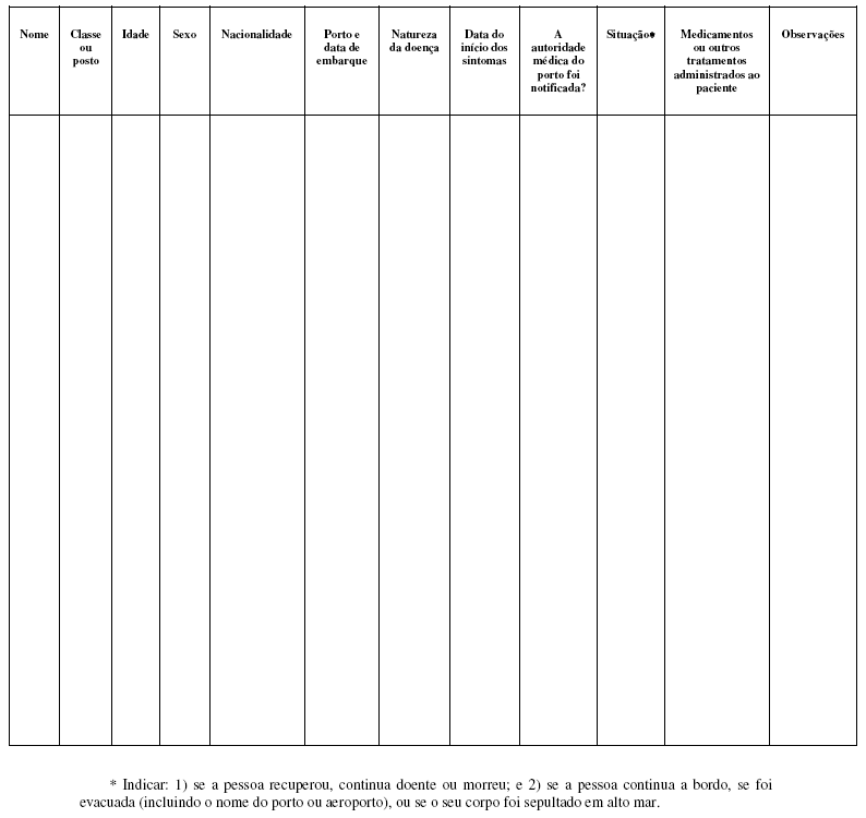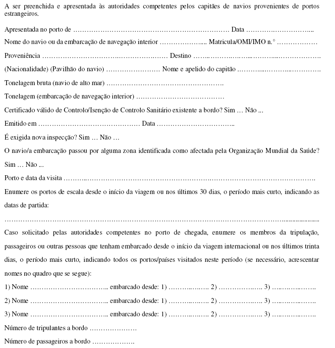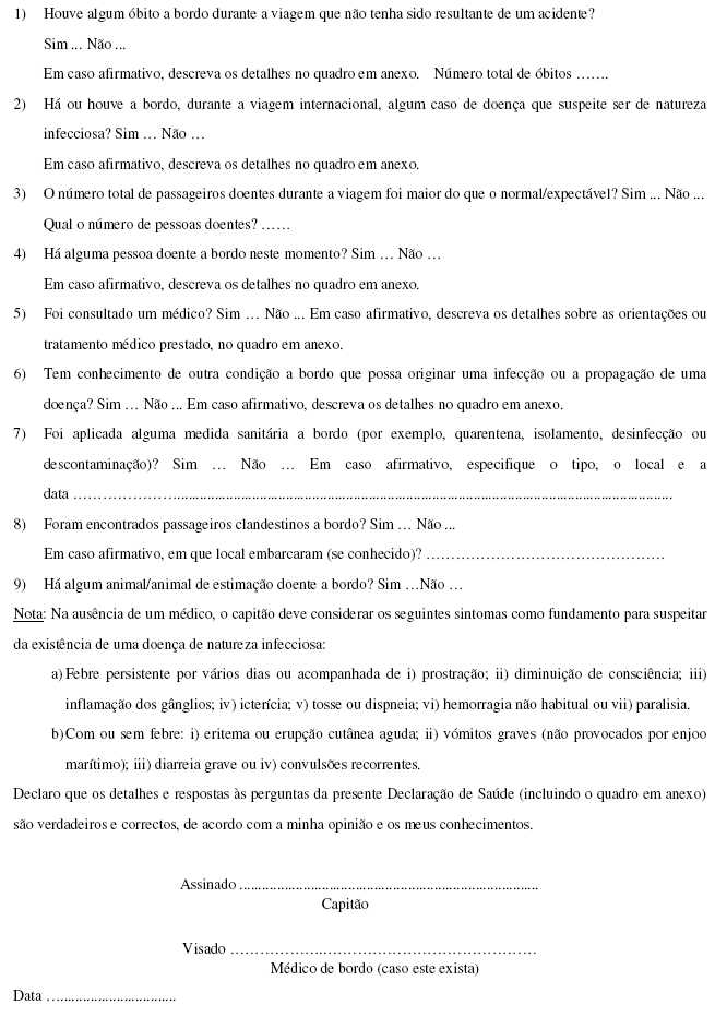 ANEXO AO MODELO DE DECLARAÇÃO MARÍTIMA DE SAÚDE