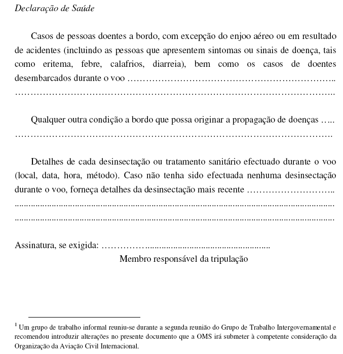 PARTE RELATIVA ÀS QUESTÕES DE SAÚDE DA DECLARAÇÃO GERAL DA AERONAVE