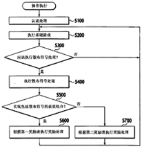 Resumo: 在隨機地重新排列多個符號的基礎遊戲中,當與獎勵有關的獲獎組合停止在獎勵線上時給出規定獎勵。當獲獎組合沒有停止在獎勵線上時,執行用於根據規定 規則重新排列符號的副遊戲。對由副遊戲重新排列的符號而言,當與獎勵有關的獲獎組合停止在獎勵線上時給出規定獎勵。