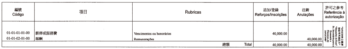 Orçamento individualizado das Regatas Internacionais de Barcos-Dragão Macau
