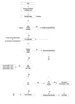 摘要:遊戲開始於初始賭注和給庄家發一張面朝上的卡片。玩家選擇補充玩家的初始賭注。完成初始庄家牌和發初始玩家牌。通過要牌或開牌來形成最終庄家牌和最終玩家牌,並且如果最終玩家牌比最終庄家牌更接近目標值,則基於其初始賭注加上任何補充給所述玩家酬金。