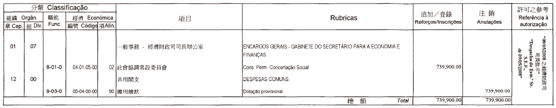Por despacho de S. Ex.ª o Chefe do Executivo, de 19 de Dezembro de 2007: