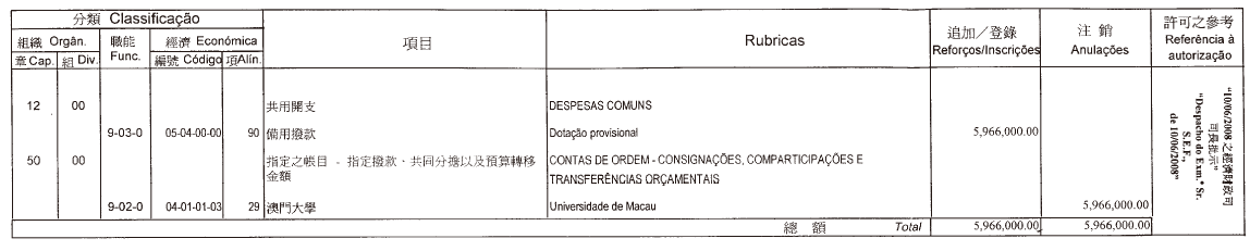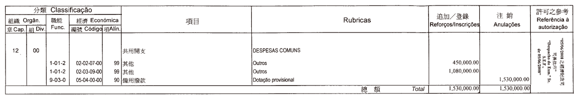 | 05 | 04 | 00 | 00 | 90 | Dotação provisional | 200,000.00 | |