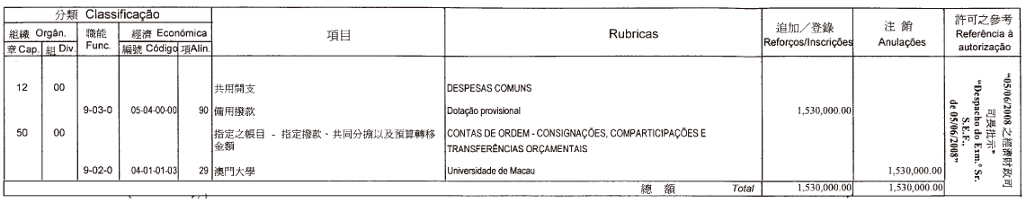Por despacho de S. Ex.ª o Chefe do Executivo, de 21 de Maio de 2008:
