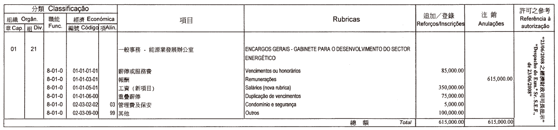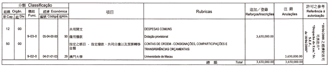Por despacho de S. Ex.a o Chefe do Executivo, de 16 de Junho de 2008: