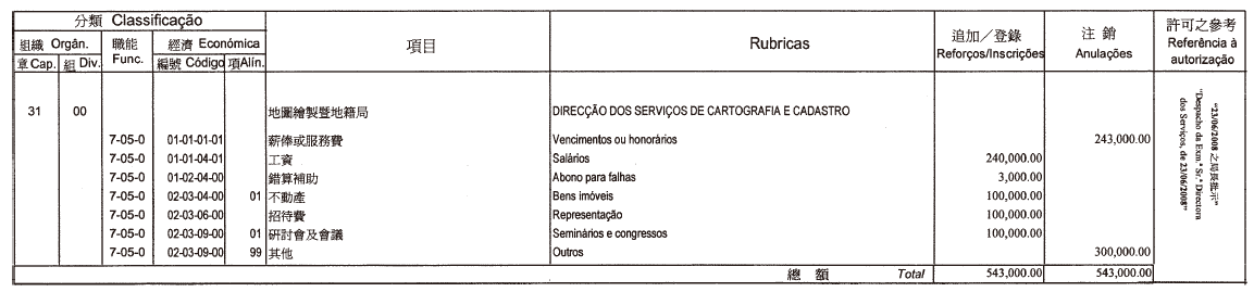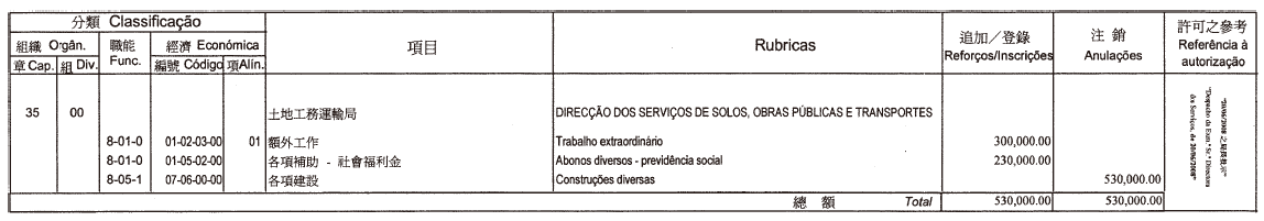 Por despacho do director dos Serviços, de 30 de Maio de 2008: