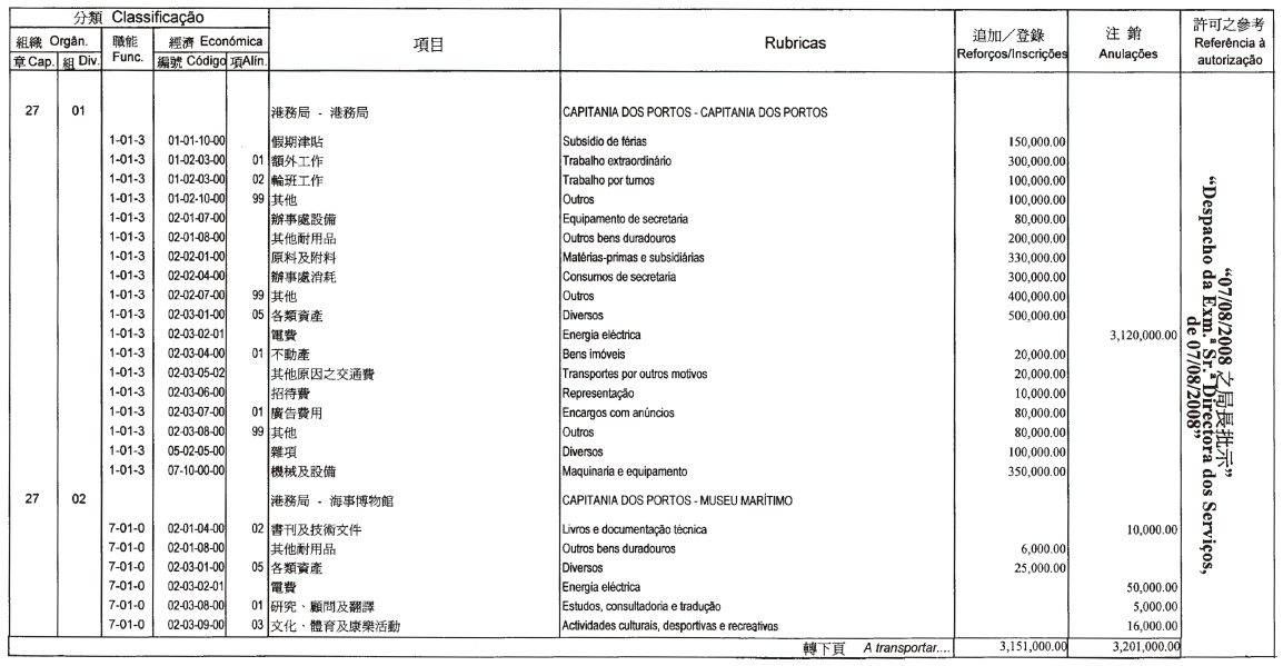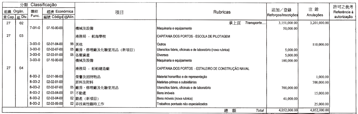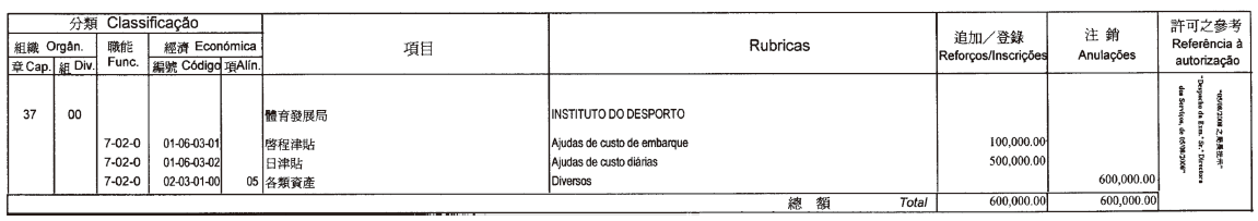 | 02 | 03 | 07 | 00 | 02 | 在澳門特別行政區之活動 | 6,000,000.00 |