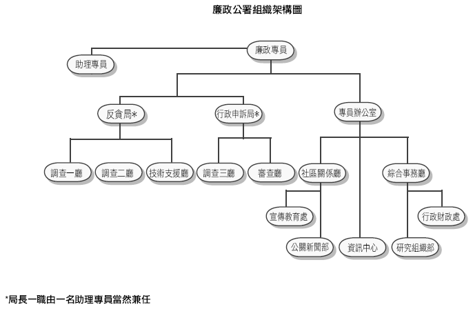 廉政公署並非行政機關組織系統的組成部分,而是一個獨立的公共機構,依法負起防止及打擊貪污、處理行政申訴的任務。