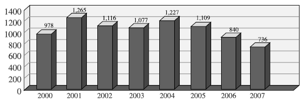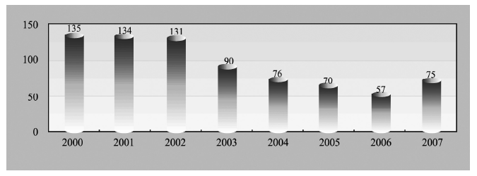 | 圖表九 | 2000-2007年立案數字趨勢 | |