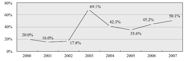 | 圖表七 | 2000-2007年可跟進案件比率比較 | |
