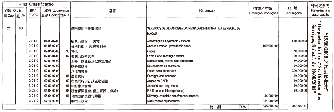 Por despacho de S. Ex.ª o Chefe do Executivo, de 14 de Agosto de 2008: