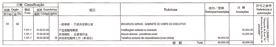 根據十二月二十一日第87/89/M號法令核准,並經十二月二十八日第62/98/M號法令修訂的《澳門公共行政工作人員通則》第二十五條及第二十六條的規定,張永根及陳子健與本局簽訂的編制外合同,分別自二零零八年十月四日及十一月一日起續期一年,並以附註形式修改該合同的第三條款,轉為收取相等於第一職階首席高級資訊技術員職級的薪俸點540點。
