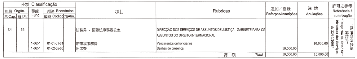 摘錄自行政法務司司長於二零零八年九月三日作出的批示: