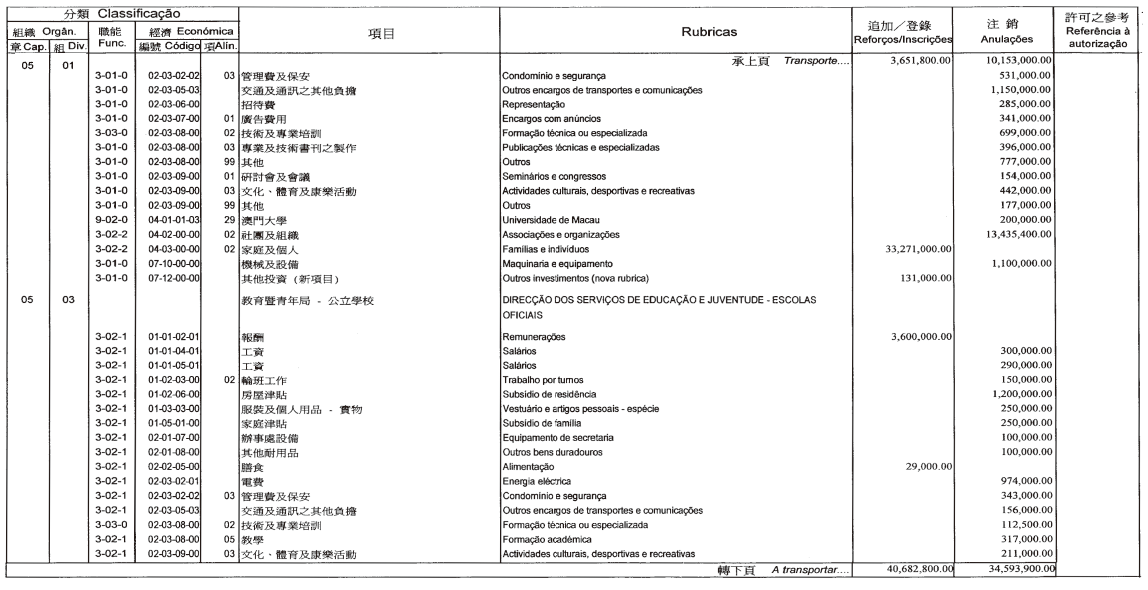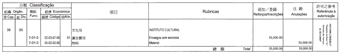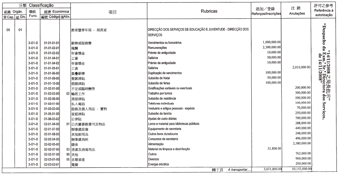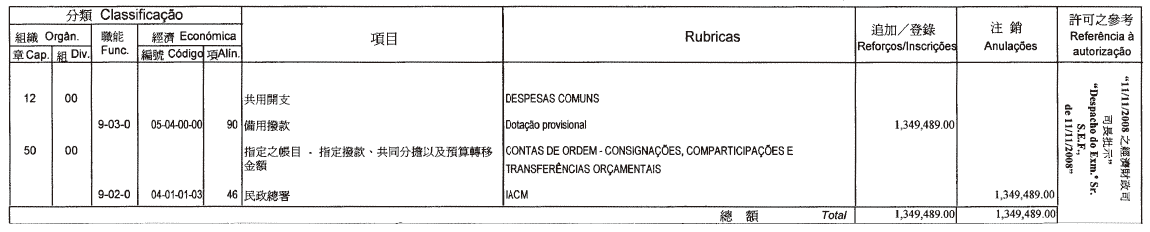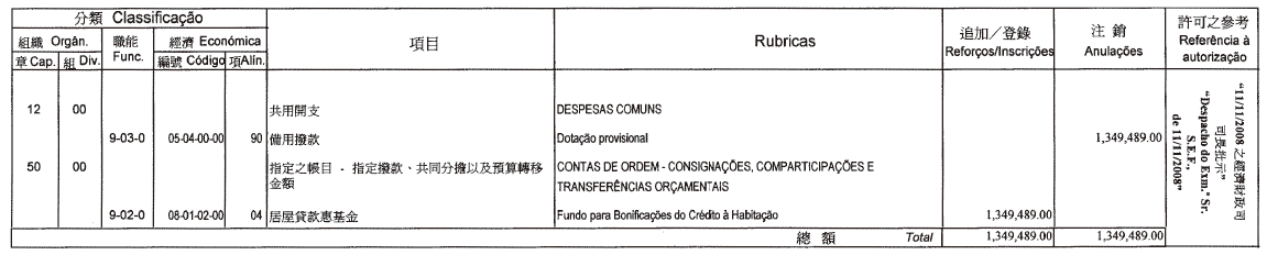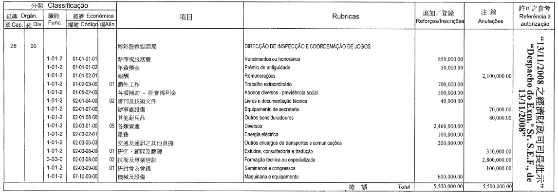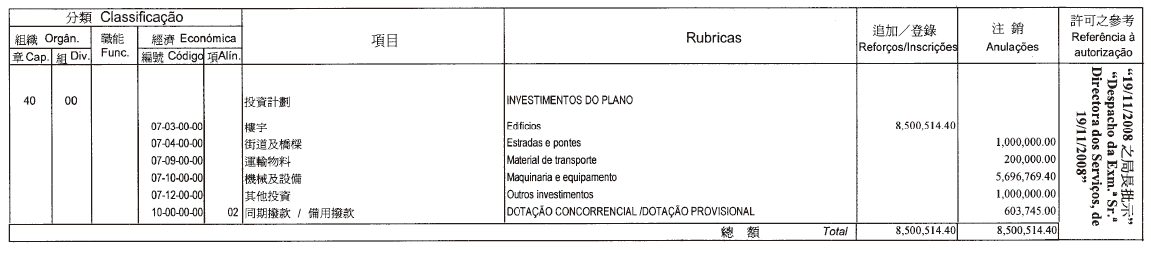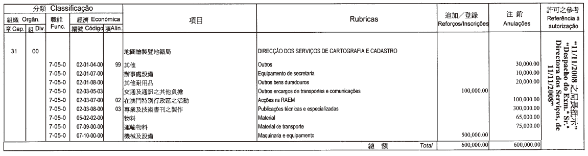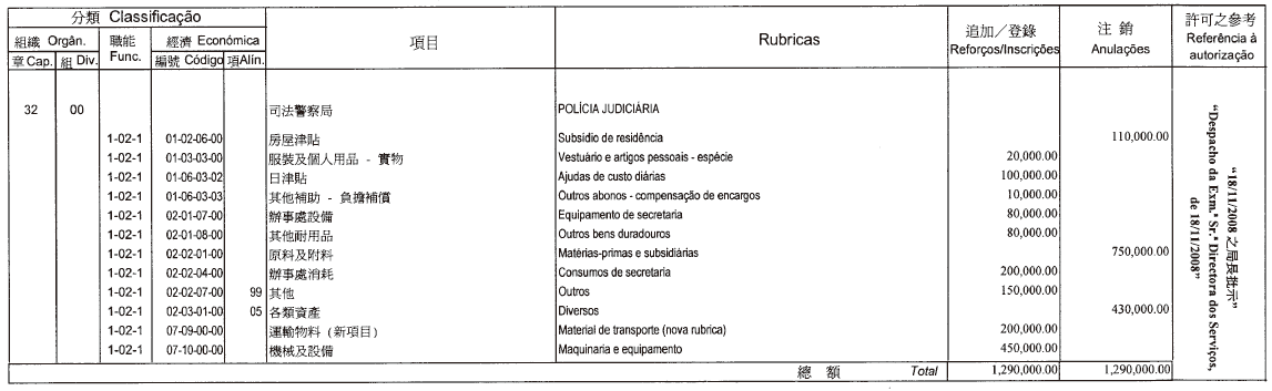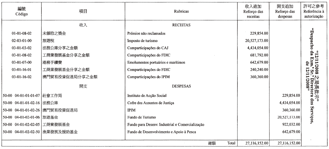 根據四月二十四日第6/2006號行政法規第三十九條第三款規定,茲公佈經本年十一月十九日社會文化司司長批示核准之二零零八財政年度澳門理工學院本身預算第八次預算修改及澳門理工學院獨立預算《04-01-05-00-56 “一國兩制”研究中心》第二次預算修改: