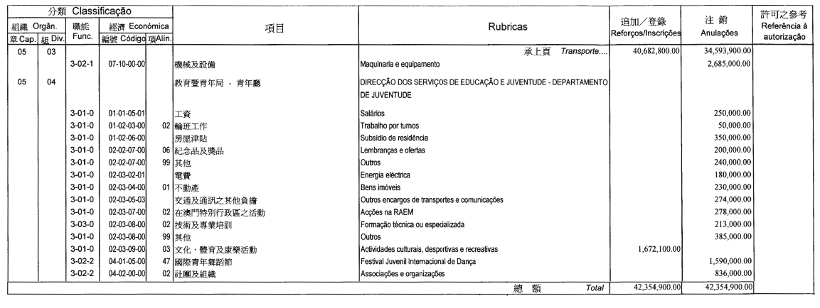 | 02 | 03 | 05 | 00 | 00 | 交通及通訊 | |||