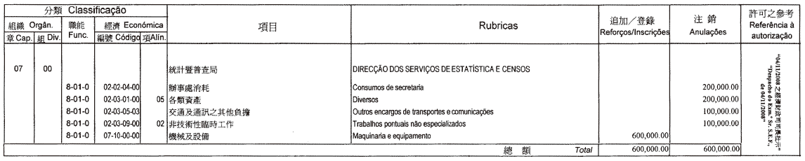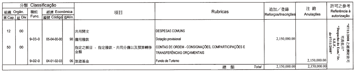 根據第7/2007號法律第十一條三及四款之規定,茲公佈下列(澳門特別行政區財政預算/二零零八)款項轉帳,該轉帳由經四月二十七日第22/87/M號法令第一條 修訂的十一月二十一日第41/83/M號法令第二十一條及第二十二條規定所核准: