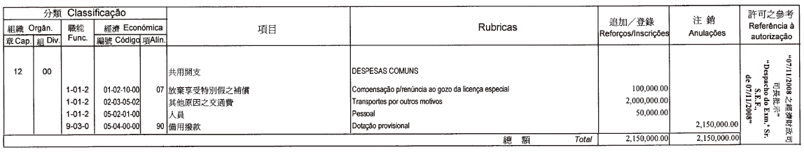 根據第6/2006號行政法規第四十一條的規定,茲公佈下列(澳門特別行政區財政預算/二零零八)款項轉帳,該轉帳按第347/2006號行政長官批示第二款規定所 核准: