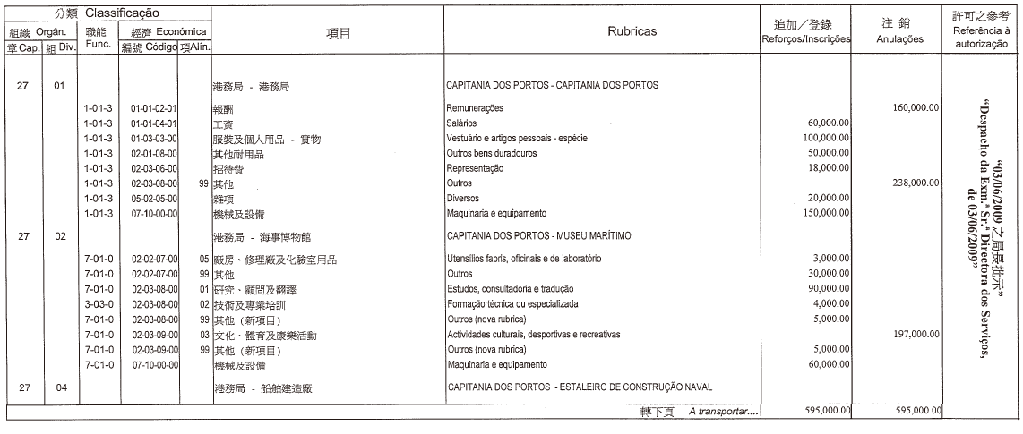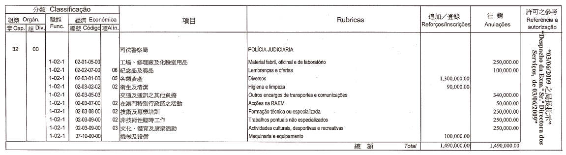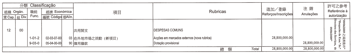 根據四月二十四日第6/2006號行政法規第四十一條的規定,現刊登經社會文化司司長二零零九年五月十二日批示核准的體育發展基金二零零九年度本身預算第二次修改: