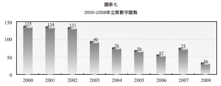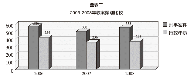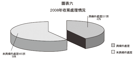 ¦b¦D¨Æ©Ê½èªºÁ|³ø®×¥ó¤¤¡A¨ã³Æ±ø¥ó³B²zªº¦³88©v¡A¨ä¤¤¥ß®×¸ò¶i31©v¡A¥[¤W2007¦~Âà¤Jªº79©v¡A2008¦~«¶}1©v¡A¦@¶·³B²z¥ß®×111©v®×¥ó¡C¦¹¥~¡A2008¦~¦@¶}¥ß¨ó¬d®×¥ó12©v¡A¥[¤W2007¦~Âà¤Jªº19©v¡A«¶}ªº2©v¡A¦@¶·³B²z¨ó¬d®×33©v¡C2008¦~¦@¶·³B²z¦D¨Æ®×¥ó144©v¡Aµ²®×46©v¡A¥]¬A½Õ¬d²×µ²®×¥ó34©v¡A²¾°eÀ˹î°|®×¥ó10©v¡A¸g«·s½Õ¬d«á¦AÂkÀɪº2©v¡C¥Ñ·G¸p°»¿ì¸gªk°|§P¨Mªº®×¥ó¥þ¦~¦@9©v¡A¯A¤Î³Q§i23¤H¡A20¦W³Q§i³Q§P¸o¦W¦¨¥ß¡A¤J¸o²v87%¡C
