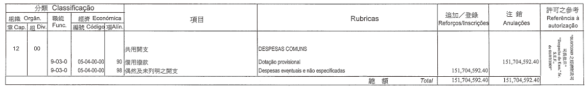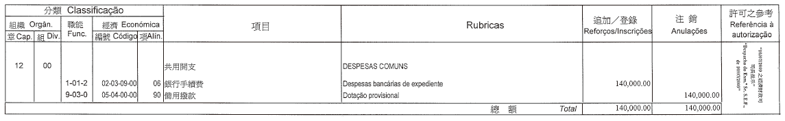 | 02 | 03 | 07 | 00 | 02 | 在澳門特別行政區之活動 | 93,429,300.00 | ¡@ |