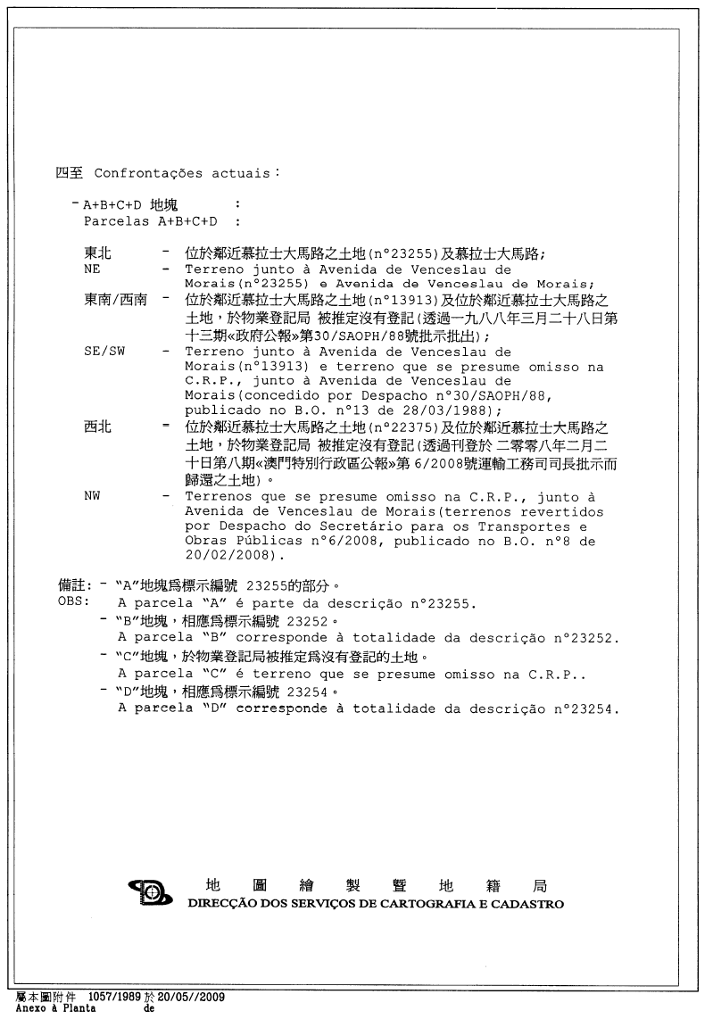 七、土地委員會的意見書已於二零零九年五月二十日經行政長官的批示確認。