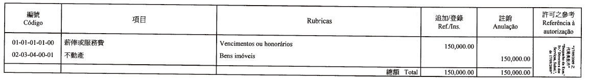 | 01 | 02 | 03 | 00 | 01 | 額外工作 | 800,000.00 | |