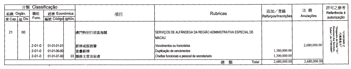 根據第6/2006號行政法規第四十一條規定,公佈經運輸工務司司長於二零零九年九月十七日批示核准之民航局二零零九年財政年度本身預算第三次修改: