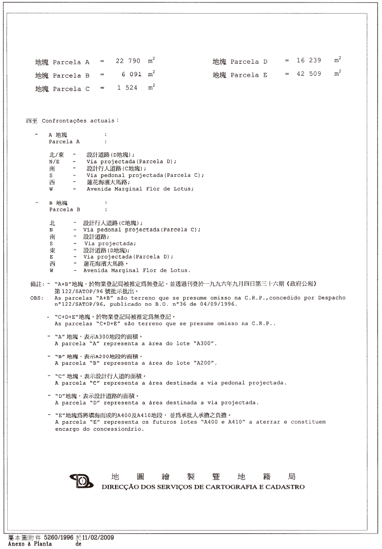 七、放棄標的之土地在地圖繪製暨地籍局於二零零九年二月十一日發出的第5260/1996號地籍圖中以字母“A”及“B”標示,而在物業登記局沒有標示。