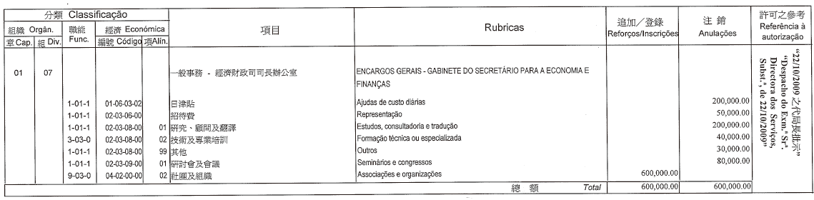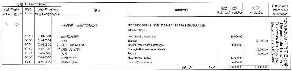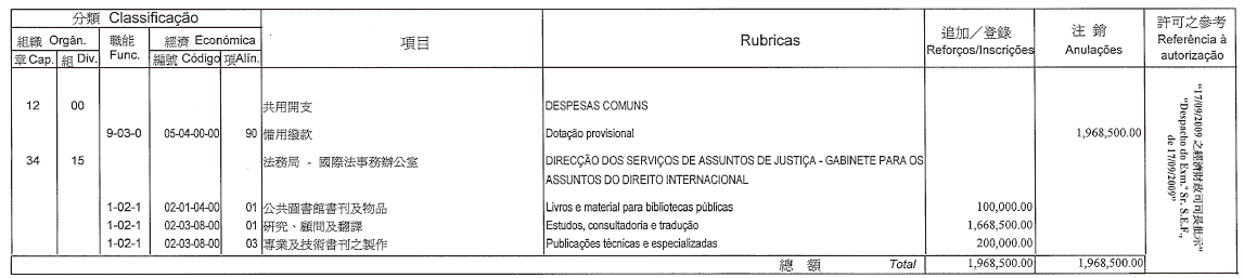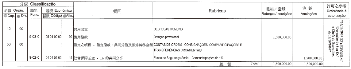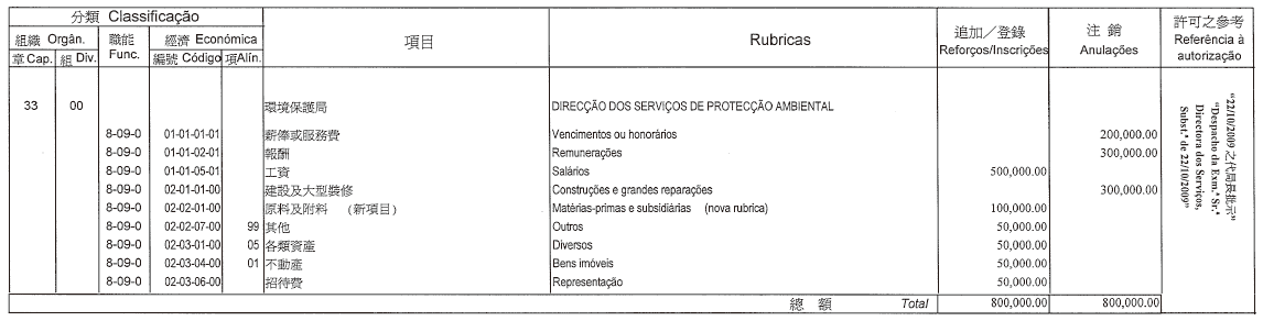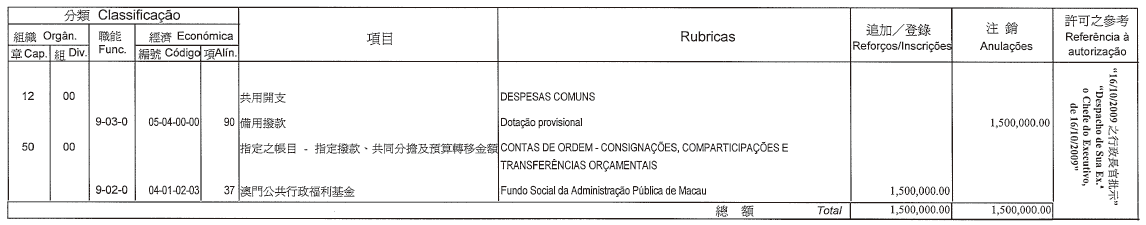 根據第3/2009號行政法規第二十六條及第6/2006號行政法規第三十九條第三款及第四十一條的規定,茲公佈經由廉政專員於二零零九年十月二十二日所核准之廉政公署二零零九年度本身預算第三次之修改: