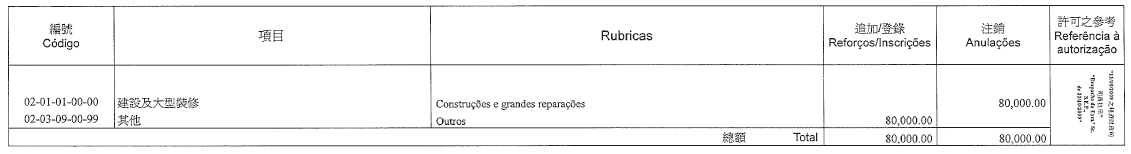 | 02 | 01 | 01 | 00 | 00 | 建設及大型裝修 | 800,000.00 | |