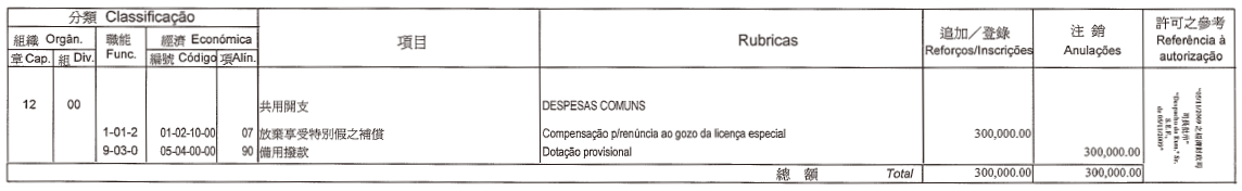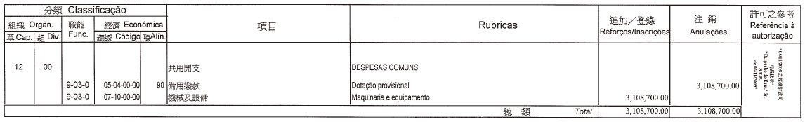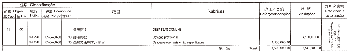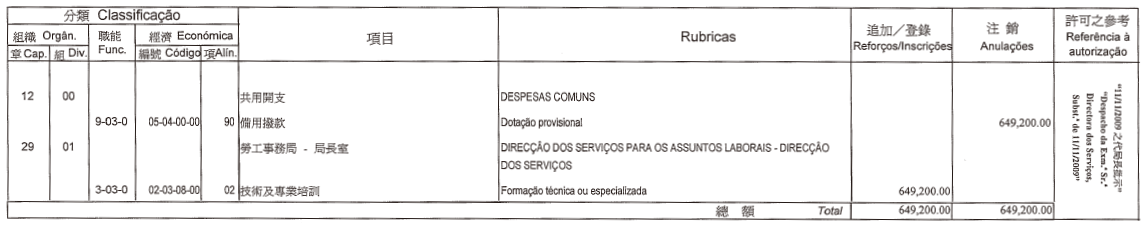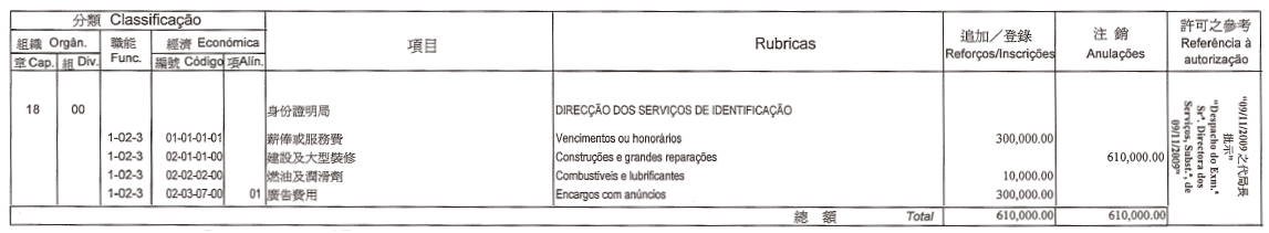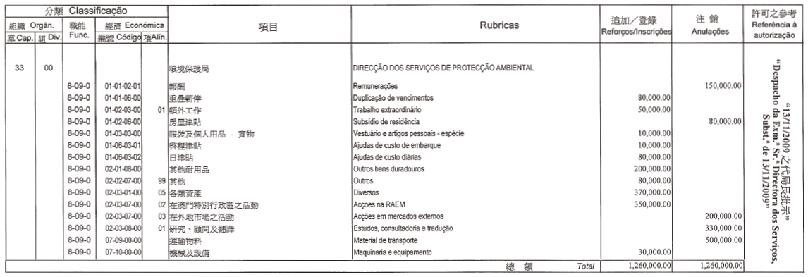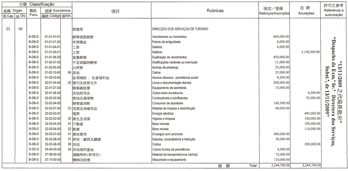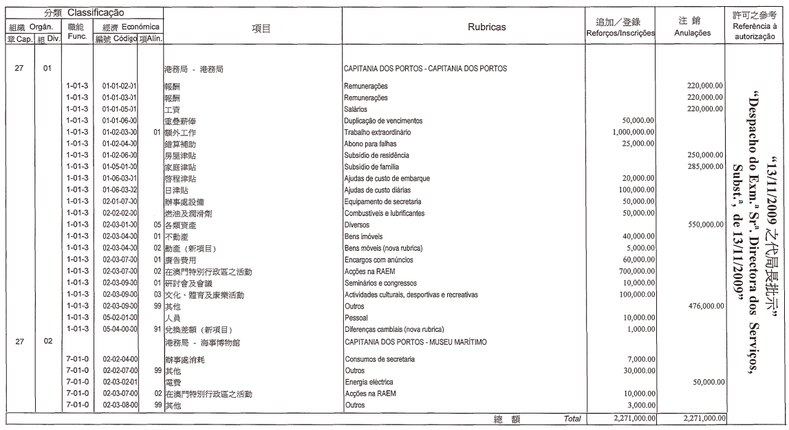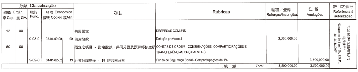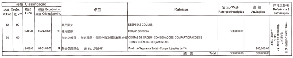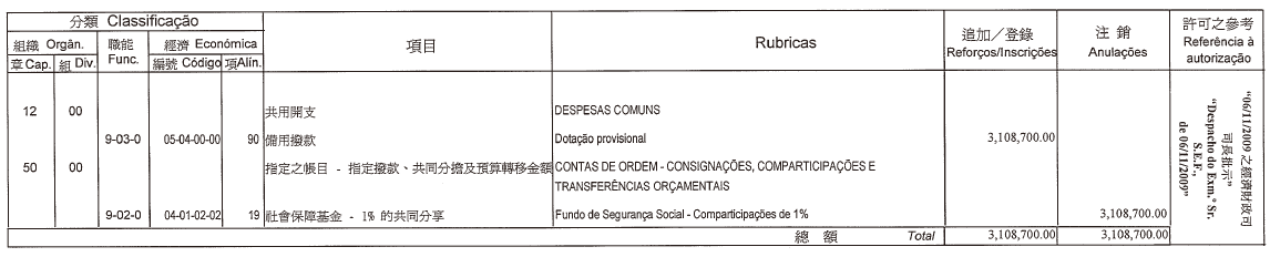 根據四月二十四日第6/2006號行政法規第四十一條的規定,現刊登經行政長官二零零九年十一月十三日批示核准的體育發展基金二零零九年度本身預算第八次修改: