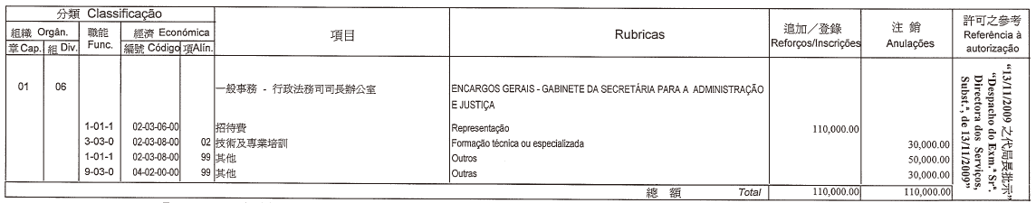 按行政法務司司長於二零零九年八月三日作出的批示: