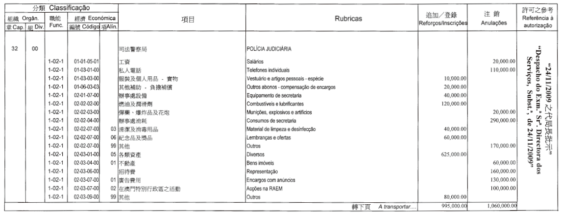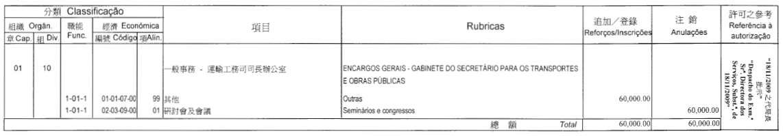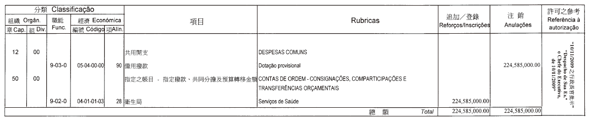 根據三月十七日第6/2006號行政法規第四十一條,以及第347/2006號行政長官批示附件I第八款規定,現刊登有關二零零九年度澳門駐葡萄牙旅遊推廣暨諮詢中心獨立預算之第一次修改,該修改獲行政長官在二零零九年十一月十一日批示核准: