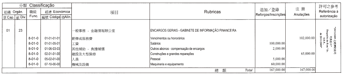 | 01 | 01 | 01 | 00 | 00 | 法律通過之編制人員 | ||
