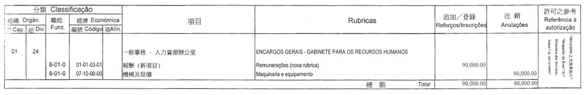 | 01 | 01 | 07 | 00 | 03 | 職務主管及秘書 | 15,000.00 | |
