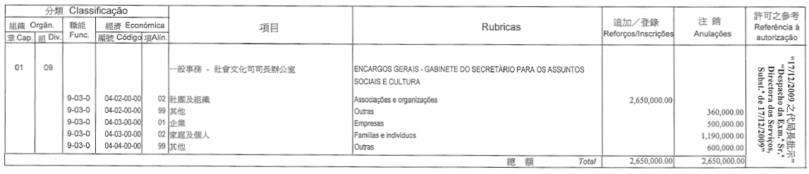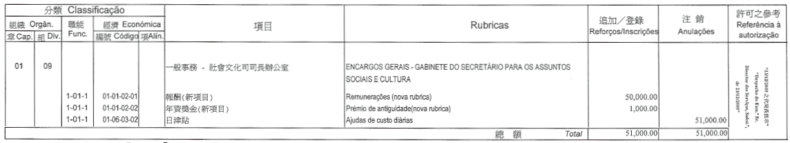 Por despacho de S. Ex.ª o Chefe do Executivo, de 19 de Outubro de 2009: