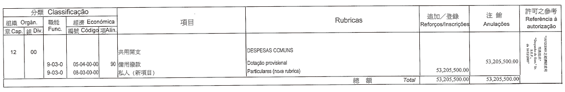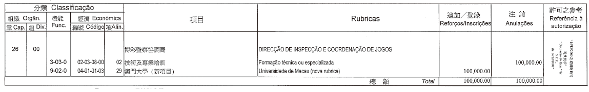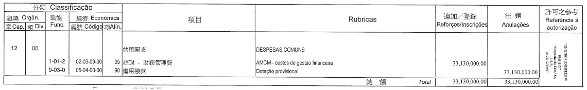 3.ª alteração ao orçamento individualizado do Grande Prémio de Macau