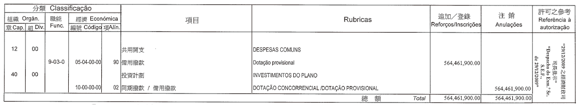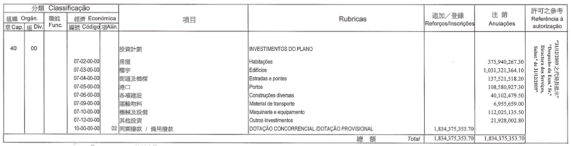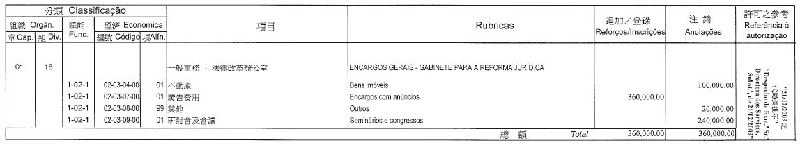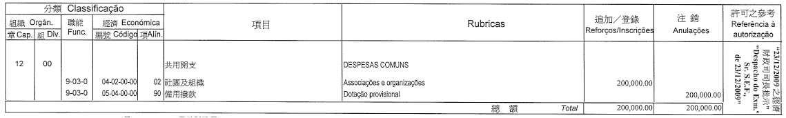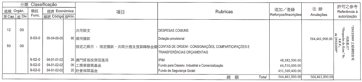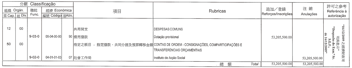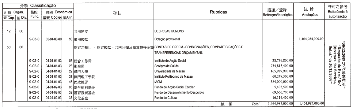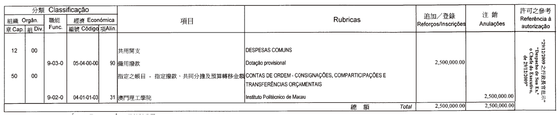 Por despacho de S. Ex.ª o Chefe do Executivo, de 10 de Dezembro de 2009: