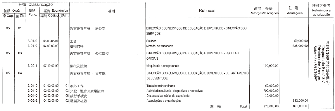 Direcção dos Serviços de Educação e Juventude, aos 21 de Dezembro de 2009. — O Director dos Serviços, Sou Chio Fai.