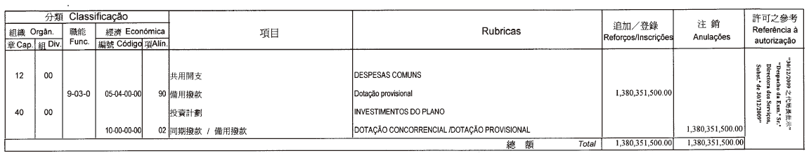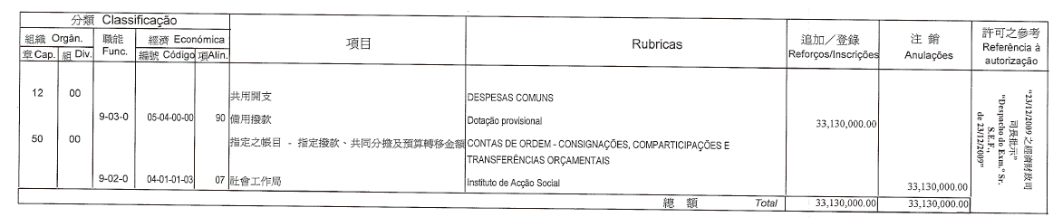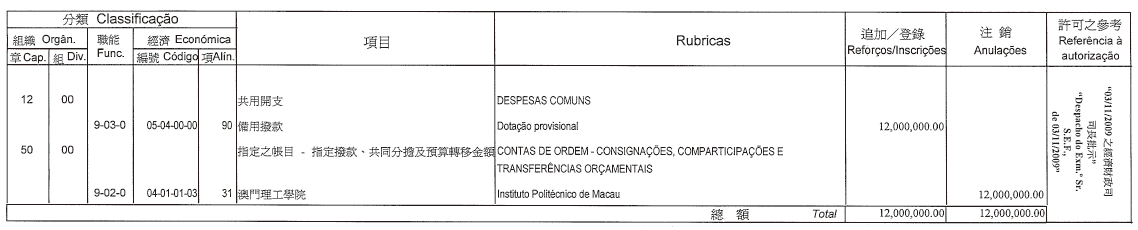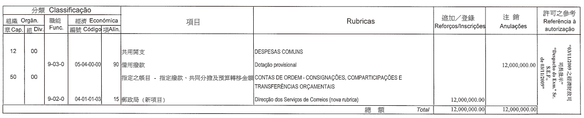Por despacho de S. Ex.ª o Chefe do Executivo, de 30 de Novembro de 2009: